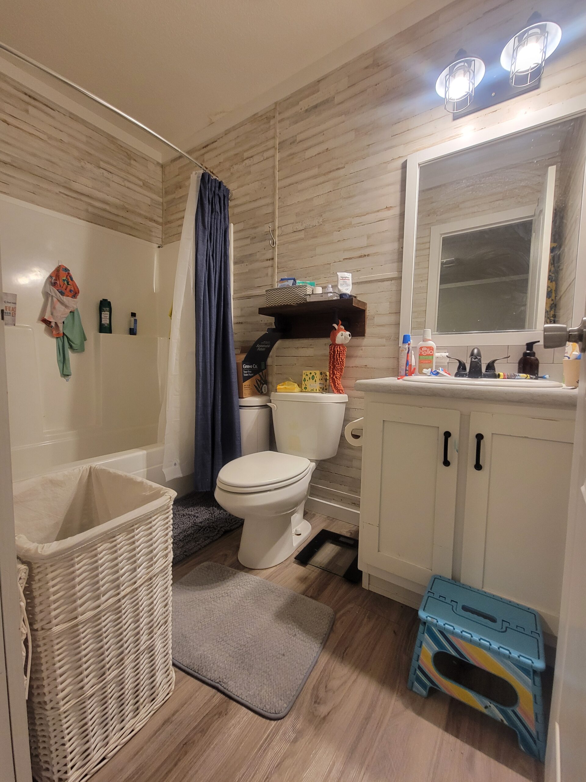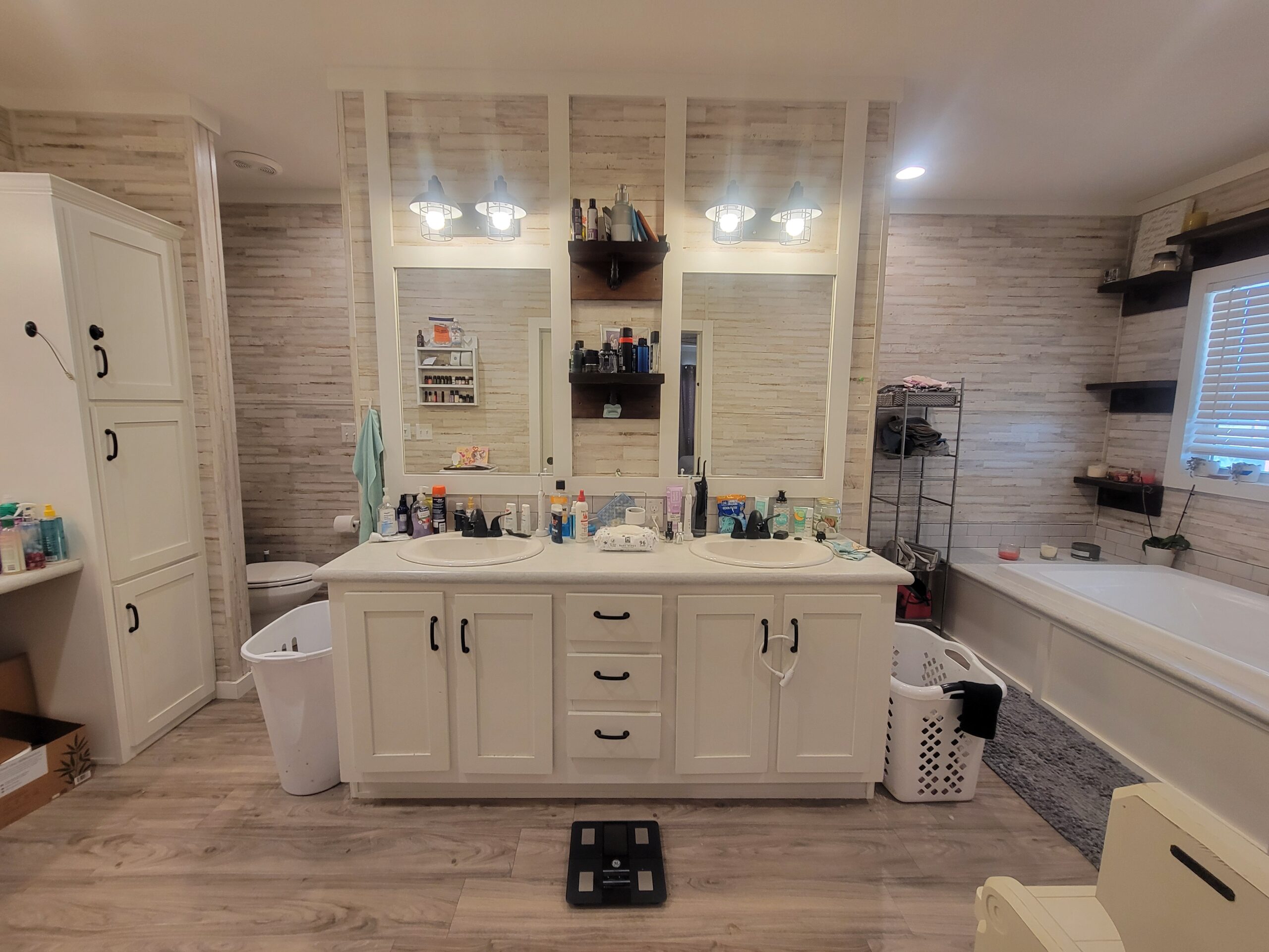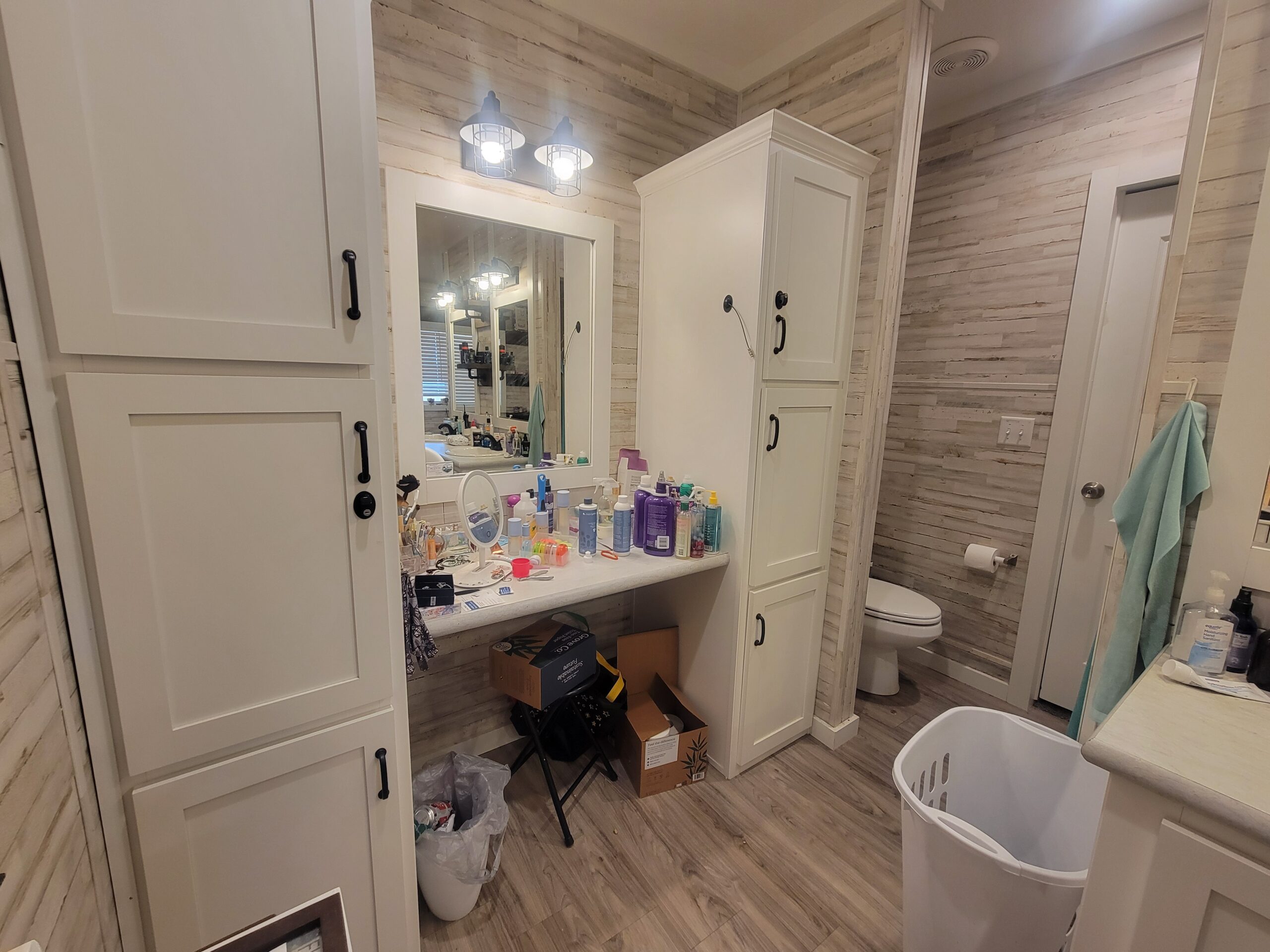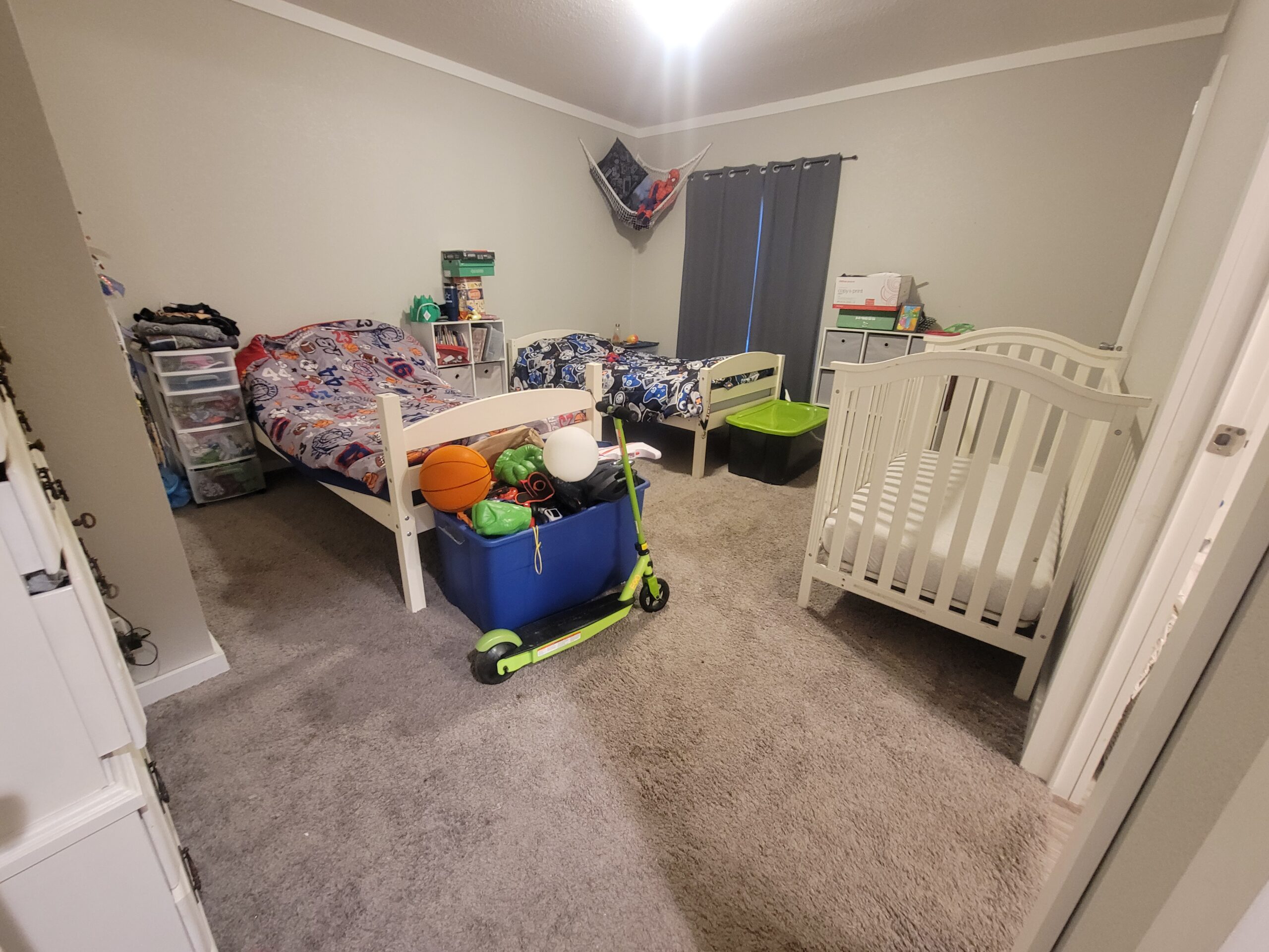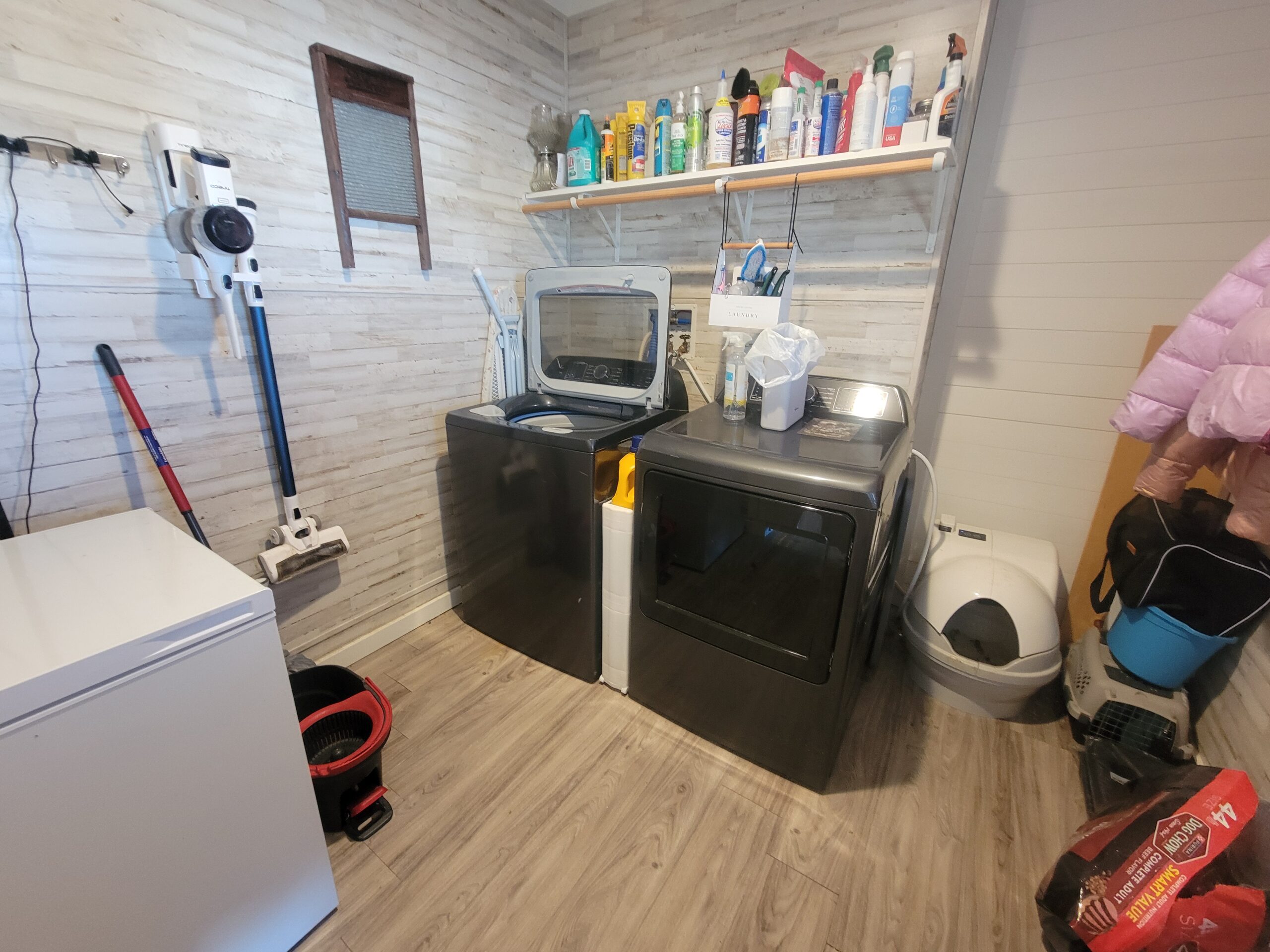 Welcome to this spacious well-appointed 5-bedroom, 3-bath home situated on a fully fenced 2-acre property, ideal for those seeking privacy, functionality, & a touch of country living. A solar-powered gate welcomes you into the property, where you’ll find a chip seal driveway, mature pear trees, & ample space for both relaxation & recreation. The home itself is a beautifully maintained double-wide with a metal roof, featuring a 2-car carport & an additional covered parking space for a boat or RV. Inside, the open-concept living area is perfect for gathering, with decorative ceiling beams, can lighting, & a large living room centered around a cozy wood-burning fireplace accented in Austin limestone. The kitchen offers a generous island with a breakfast bar, solid surface countertops, a stainless steel apron sink, & a walk-in pantry. Stainless appliances include a dishwasher & vent hood, with a propane stove & water heater providing efficient functionality. The adjacent dining area & spacious utility room-with access to the covered back patio-enhance everyday convenience. The layout offers excellent separation of space, with four secondary bedrooms & two full baths on one side of the home, & a master suite on the other. The oversized primary bedroom includes 2 walk-in closets, a spa-like ensuite featuring a large soaking tub, a walkthrough shower, double vanity, separate makeup vanity, & abundant linen storage. A dedicated media-playroom with beadboard paneling & decorative ceiling beams adds flexibility & charm. Outside, the amenities continue with an above-ground pool that is fully fenced, a chicken coop, an 8×40 storage container, & a covered patio ideal for relaxing or entertaining. The property also includes solar panels, a 200-gallon propane tank, with a yearly lease, & a 380 ft. deep water well with a sulfur filter & water softener. This home blends comfort, energy efficiency, and rural charm in a quiet setting with everything you need to live, play, and thrive.