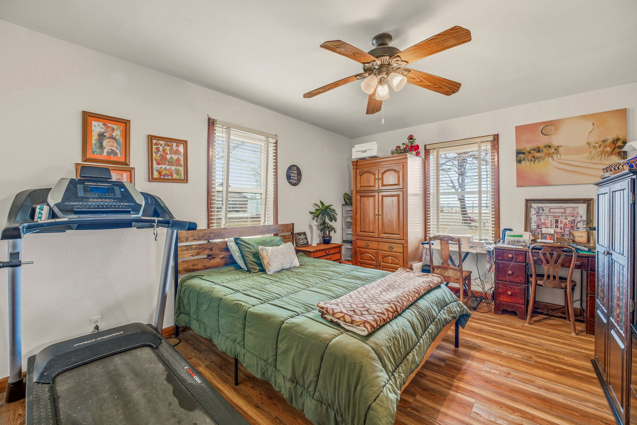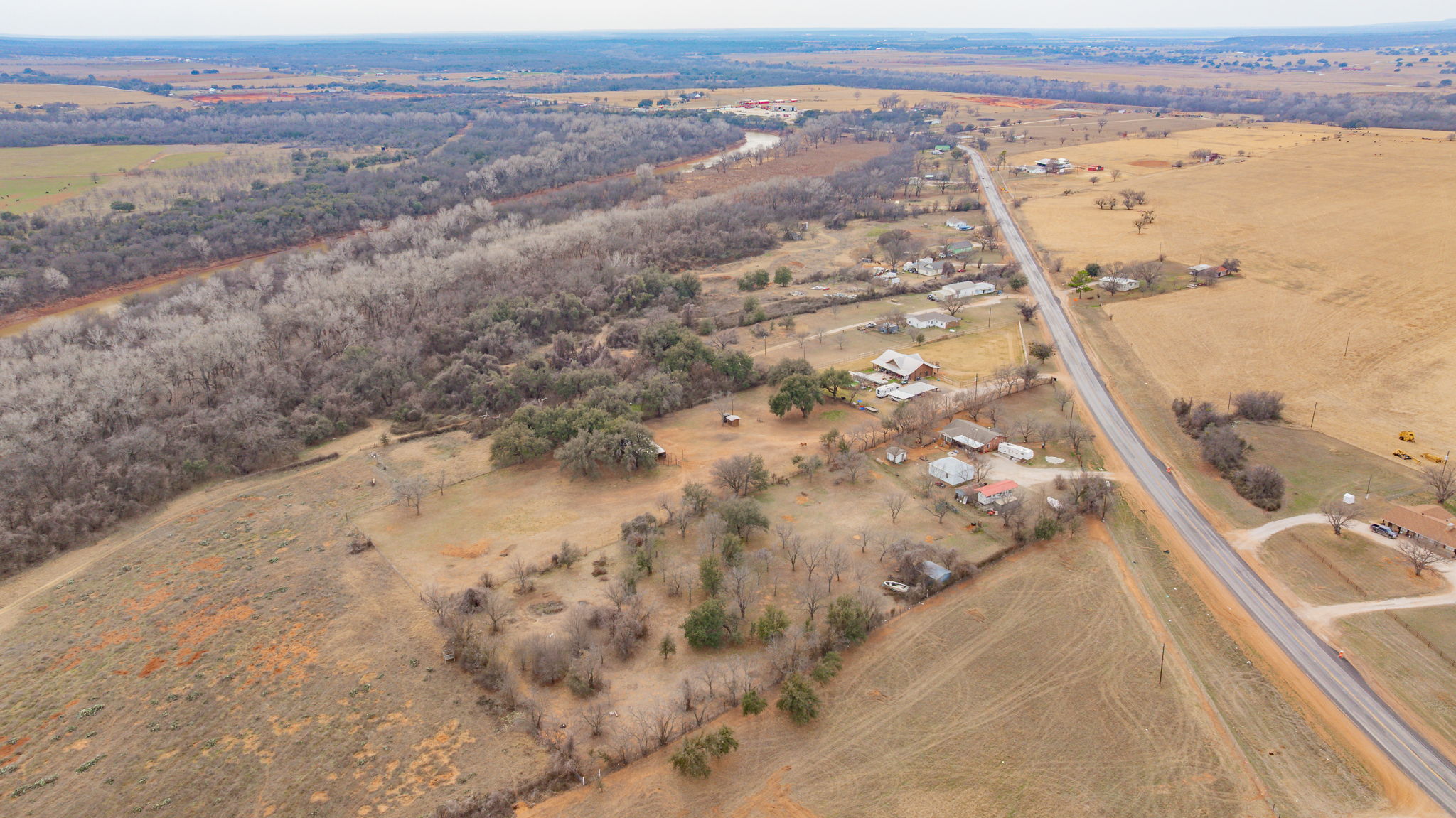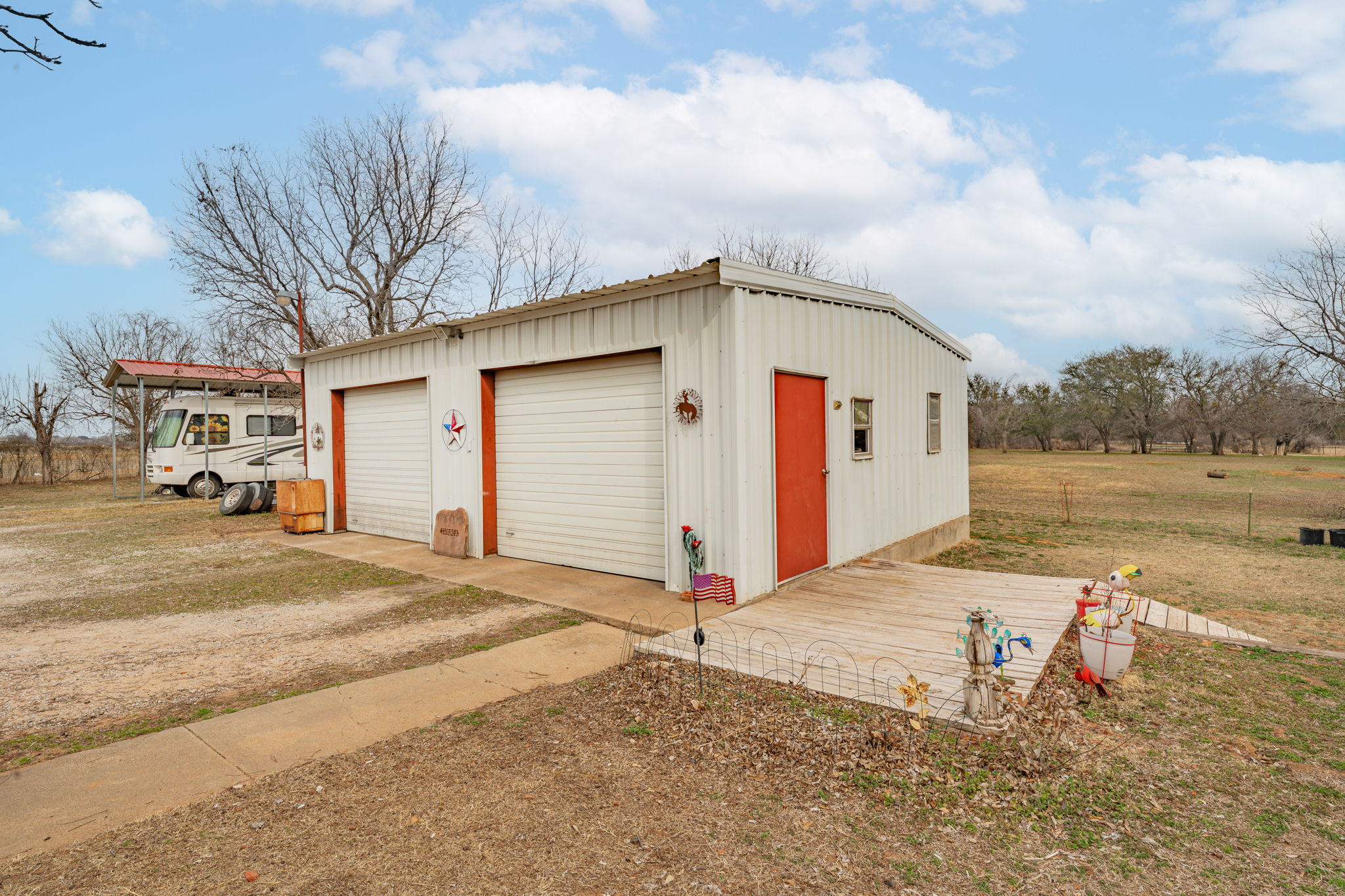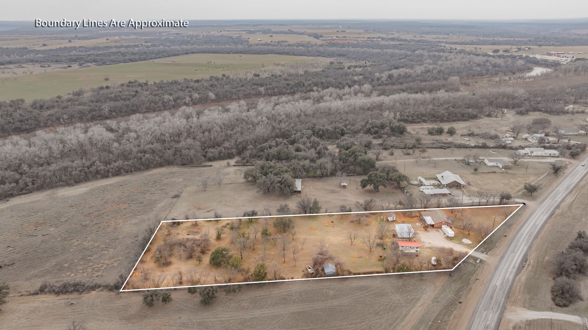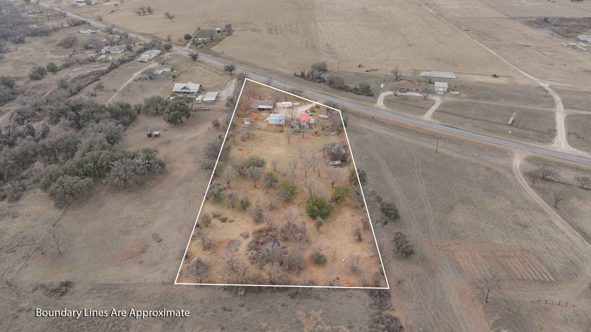 Very impressive, well-maintained, 3 bedroom, brick Country Home on 3.08 acres m-l, located outside of the city limits just south of Graham near the Brazos River Bridge; This super-charming home features a plethora of custom amenities such as an open concept living, dining and kitchen; Luxury, water-proof vinyl plank flooring throughout, ceiling fans throughout, new natural gas line from the house to the road, newer, white kitchen cabinetry, Corian style countertops, under-cabinet lighting, lazy Susan, double sink, dishwasher, refrigerator, vent-a-hood & spacious walk-in pantry; Cute sunroom for house plant lovers and nature lovers who enjoy a serene space for enjoying their morning coffee while spotting an occasional deer; Central Heat & Air with natural gas heat and electric air along with a few natural gas wall heaters in various rooms; Attic fan; Spacious hall bathroom boasting a step-in, oversized shower, extra-large vanity with sink & make-up area & toilet; Split bedroom arrangement; Primary bedroom has a half bath offering a vanity with sink and an elevated toilet; Well-appointed laundry room with washer & dryer connections; Two car oversized detached shop-garage combo is 24′ X 28′ with concrete slab, electricity and remote controlled doors with a side walk-thru door; The additional one-car metal garage is 22′ X 15′; The RV Port is negotiable depending on offer; The metal barn on concrete slab is 20′ X 16′ and offers ample storage for your tractors, boat or ATVs; A functioning 65′ water well is located in the handy Wellhouse-Garden Shed with concrete floor, a new well pump and control box; Electrical updates including some updates in the attic and a newer panel box; New windows; Covered patio with wood decking and brick pavers; Rain gutters; Security lighting; Perimeter fenced with hog panel lowers and 2 strand uppers; Cross fenced; Double gate entrance; Dog run; Out-in-the-country vibes but close to town; Just 2 miles south of Walmart! Must see!!